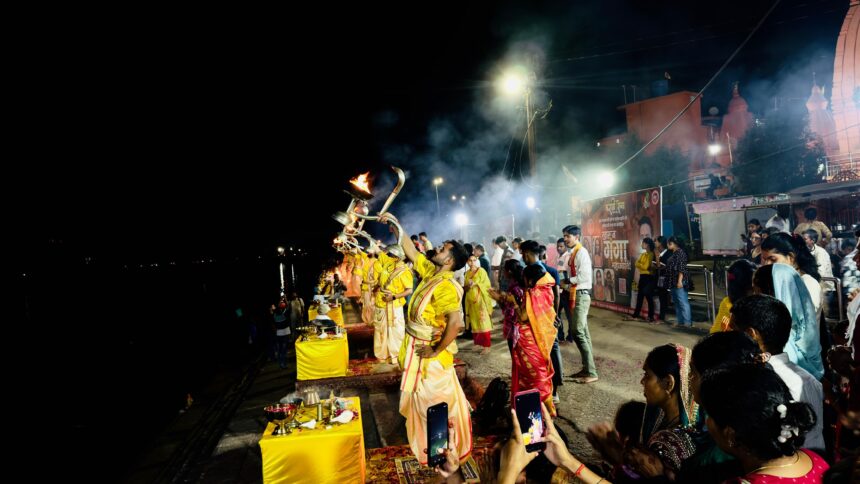 भादौ पूर्णिमा की संध्या पर एक बार फिर महादेव घाट रायपुर पर सजी खारुन गंगा महाआरती की छटा, पितरों को अर्पित किए गए आरती के पुण्य