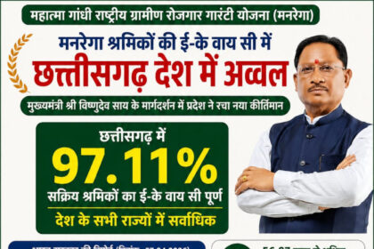 मनरेगा श्रमिकों की ई- के वाय सी में छत्तीसगढ़ देश में अव्वल, मुख्यमंत्री श्री विष्णुदेव साय के मार्गदर्शन में प्रदेश ने रचा नया कीर्तिमान….