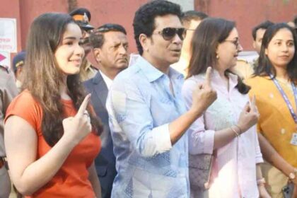 सचिन तेंदुलकर ने मुंबई में परिवार के साथ किया मतदान