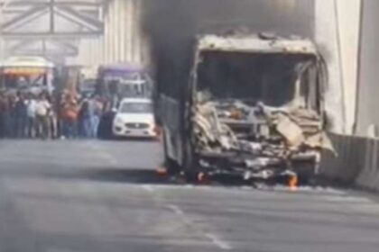 पटना के महात्मा गांधी सेतु पर बस में लगी भीषण आग, यात्रियों ने कूदकर बचाई जान