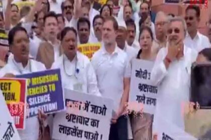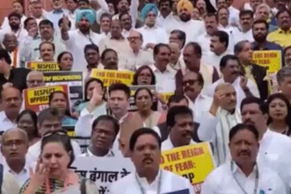 संसद भवन परिसर में विपक्षी दलों के सांसदों ने केंद्र सरकार पर…