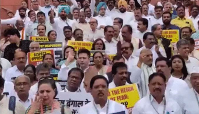 संसद के बाहर विपक्ष नीट और एजेंसियों के दुरुपयोग मामले में कर रहा प्रदर्शन