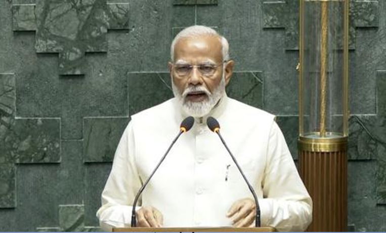 नई दिल्ली। प्रधानमंत्री नरेंद्र मोदी मंगलवार को राष्ट्रपति के अभिभाषण पर लाए गए धन्यवाद प्रस्ताव को लेकर लोकसभा को संबोधित किया। पीएम मोदी ने कहा कि वे राष्ट्रपति के भाषण के प्रति आभार व्यक्त करने के लिए सदन में उपस्थित हुए हैं। पीएम मोदी ने कहा 'जो पहली बार सांसद बनकर हमारे बीच आए हैं और उनमें से कुछ साथियों ने अपने विचार व्यक्त किए। उनका व्यवहार ऐसा थी, जैसे एक अनुभवी सांसद का होता है। उन्होंने सदन की गरिमा को बढ़ाया है।' पीएम मोदी ने कहा कि देश ने सफल चुनाव आयोजित कर दुनिया को दिखा दिया है कि ये सबसे बड़ा चुनाव था। प्रधानमंत्री ने कहा 'मैं कुछ लोगों की पीड़ा समझ सकता हूं क्योंकि लगातार झूठ का प्रसार करने के बाद भी उनकी पराजय हुई।' प्रधानमंत्री ने आगे कहा 'देश की जनता ने तीसरी बार हमें सेवा करने का अवसर दिया है। देश की जनता की भारतीय जनता पार्टी के 10 वर्ष के ट्रैक रिकॉर्ड को देखा।' पीएम मोदी ने कहा कि देश की जनता ने देखा है कि हमारा एकमात्र लक्ष्य भारत सर्वप्रथम है। उन्होंने कहा ‘हमारा एक ही लक्ष्य रहा है कि ‘भारत प्रथम’। हमारी सरकार सबका साथ, सबका विकास के मंत्र पर काम करती है। इस विचार को सर्वोपरि रखते हुए हमने देश की सेवा करने का प्रण लिया है।’ आतंकवाद पर बोले पीएम मोदी ने कहा, आज का भारत घर में घुसकर मारता है। किसी समय में घोटालों की घोटालों से प्रतिस्पर्धा होती थी।  तुष्टिकरण वालों को दर्द हो रहा है। पीएम मोदी ने कहा कि आज के समय में भारत ऐसी स्थिति में पहुंच गया है कि हमें अपने आप से ही प्रतिस्पर्धा करनी है. पिछले 10 साल में हमने जो स्पीड पकड़ी है और अब इस स्पीड को कायम रखना है। पीएम मोदी ने आतंकवाद के मुद्दे पर कहा कि आज का नया भारत घर में घुसकर आतंकियों को मारता है. देश की सुरक्षा के साथ कोई समझौता नहीं किया जाएगा. आतंकियों को उनकी जगह दिखाई जाएगी। मोदी ने कांग्रेस पर हमला करते हुए कहा कि 2014 से पहले देश के लोग यही कहते थे कि 'इस देश का कुछ नहीं हो सकता', ये वो सात शब्द थे जो देश की जनता कहती थी. हमने इसमें परिवर्तन किया. नरेंद्र मोदी ने 2014 के बाद केंद्र सरकार के कामों को गिनाया और कहा कि हमारे आने से पहले घोटालों की घोटालों से प्रतिस्पर्धा होती थी. हमने इसको बंद किया. गैस कनेक्शन के लिए सांसदों और विधायकों के चक्कर काटने पड़ते थे और वो भी नहीं मिलते थे. राशन लेने के लिए तक तो रिश्वत देनी पड़ती थी.