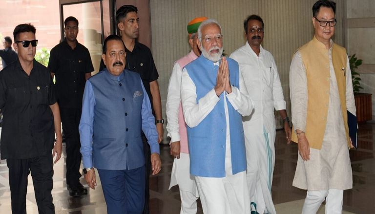 प्रधानमंत्री नरेंद्र मोदी ने मंगलवार (2 जुलाई) को एनडीए संसदीय दल की बैठक की अध्यक्षता की. तीसरी बार प्रधानमंत्री पद संभालने के बाद मोदी ने पहली बार सत्तारूढ़ गठबंधन के सांसदों को संबोधित किया. इस दौरान उन्होंने सांसदों से बताया कि उन्हें संसद में पूरी तैयारी के साथ आना है. उन्हें ग्राउंड पर भी काम करने की जरूरत है. एनडीए की बैठक ऐसे समय पर हुई है, जब संसद के दोनों सदनों लोकसभा और राज्यसभा में राष्ट्रपति द्रौपदी मुर्मू के अभिभाषण पर चर्चा की जानी है.संसदीय दल की बैठक की शुरुआत होने पर जैसे प्रधानमंत्री मोदी पहुंचे, उनका स्वागत किया गया. एनडीए के घटक दलों के सांसदों ने तालियों के साथ पीएम का स्वागत किया. इसके बाद उन्हें माला पहनाई गई. संसदीय कार्य मंत्री और बीजेपी नेता किरेन रिजिजू ने बताया कि तीसरी बार प्रधानमंत्री बनने पर नरेंद्र मोदी को बधाई दी गई. पीएम मोदी के नेतृत्व में एनडीए को आगे ले जाने का लक्ष्य रखा गया. पहली बार आए सांसदों से कहा गया कि वे नियम के अनुसार ही पेश आएं.