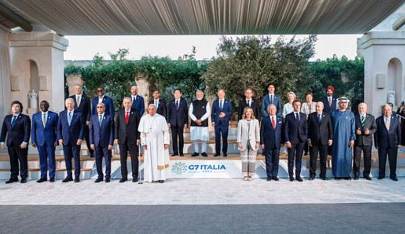 जी7 शिखर सम्मेलन में हिस्सा लेने के बाद भारत के प्रधानमंत्री नरेंद्र मोदी ब्रिडिसि एयरपोर्ट से भारत के लिए रवाना हो गए। इटली में उन्होंने ब्रिटेन के प्रधानमंत्री ऋषि सुनक, फ्रांस के राष्ट्रपति इमैनुएल मैक्रों और पोप फ्रांसिस सहित कई नेताओं के साथ द्विपक्षीय वार्ता की। वहीं, कनाडा के प्रधानमंत्री जस्टिन ट्रूडो से मुलाकात काफी चर्चा में रही। हालांकि, इन सबके अलावा इस सम्मेलन की एक फैमिली फोटो काफी चर्चाओं में आ गई है, जिससे साफ जाहिर होता है कि जी7 का सदस्य न होते हुए भी भारत का दबदबा कायम है।दरअसल, प्रधानमंत्री नरेंद्र मोदी जी7 शिखर सम्मेलन में पहुंचे। इटली की प्रधानमंत्री जॉर्जिया मेलोनी ने उनका गर्मजोशी से स्वागत किया।