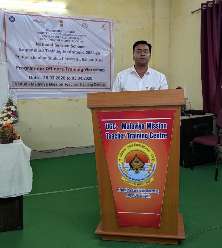 रायपुर, 1 अप्रैल:पंडित रविशंकर शुक्ल विश्वविद्यालय में आयोजित एनएसएस कार्यक्रम अधिकारियों की प्रशिक्षण कार्यशाला में संवेदनशील विषयों पर विशेष व्याख्यान का आयोजन किया गया। इस अवसर पर छत्तीसगढ़ राज्य बाल संरक्षण आयोग के पूर्व पीठासीन सदस्य एवं राष्ट्रीय स्तर के विशेषज्ञ सोनल कुमार गुप्ता ने बतौर रिसोर्स पर्सन अपनी उपस्थिति दर्ज कराई।