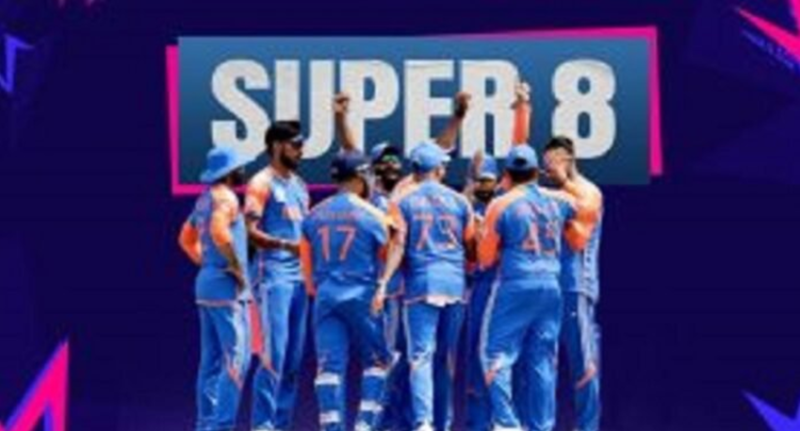 भारतीय टीम सुपर-8 चरण में अपने अभियान की शुरुआत 20 जून को बारबाडोस में अफगानिस्तान के खिलाफ करेगी। इसके बाद 22 जून को एंटीगा में बांग्लादेश से भिड़ेगी। 24 जून को सेंट लूसिया में ऑस्ट्रेलिया के खिलाफ भारतीय टीम अपना आखिरी मैच खेलेगी। सभी मैच भारतीय समयानुसार रात 8 बजे से होंगे।