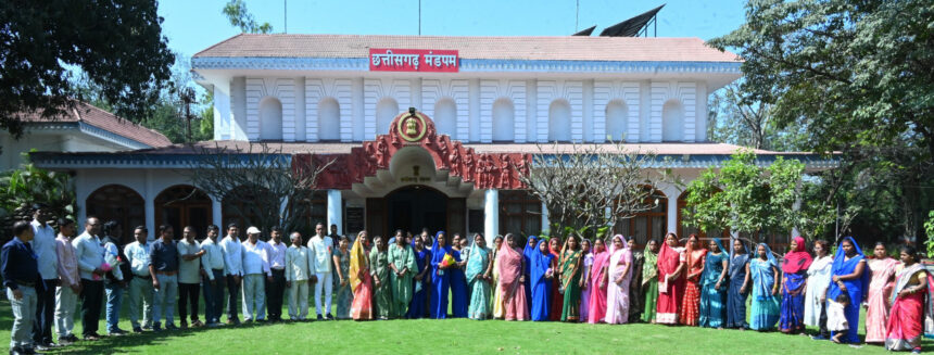 रायपुर: राज्यपाल रमेन डेका की पहल पर लोकभवन की गतिविधियों से जनसामान्य को जोड़ने के उद्देश्य से लोकभवन का भ्रमण कराया जा रहा है। इसी कड़ी में बेमेतरा जिले के ग्राम टेमरी के जनप्रतिनिधियों, स्व-सहायता समूहों के सदस्यों और अन्य ग्रामीणों ने सरपंच श्री शिवमूर्ति कोसले और विहान स्व-सहायता समूहों की प्रमुख सुश्री गीता बंजारे के साथ आज लोकभवन का भ्रमण किया।
